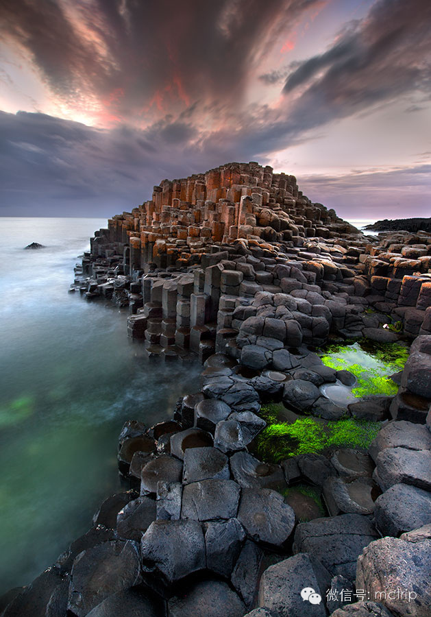 爱尔兰第一景点当属巨人堤了。绵延数千米的堤道是由数万根大小均匀的玄武岩聚集而成的,宏伟壮丽。